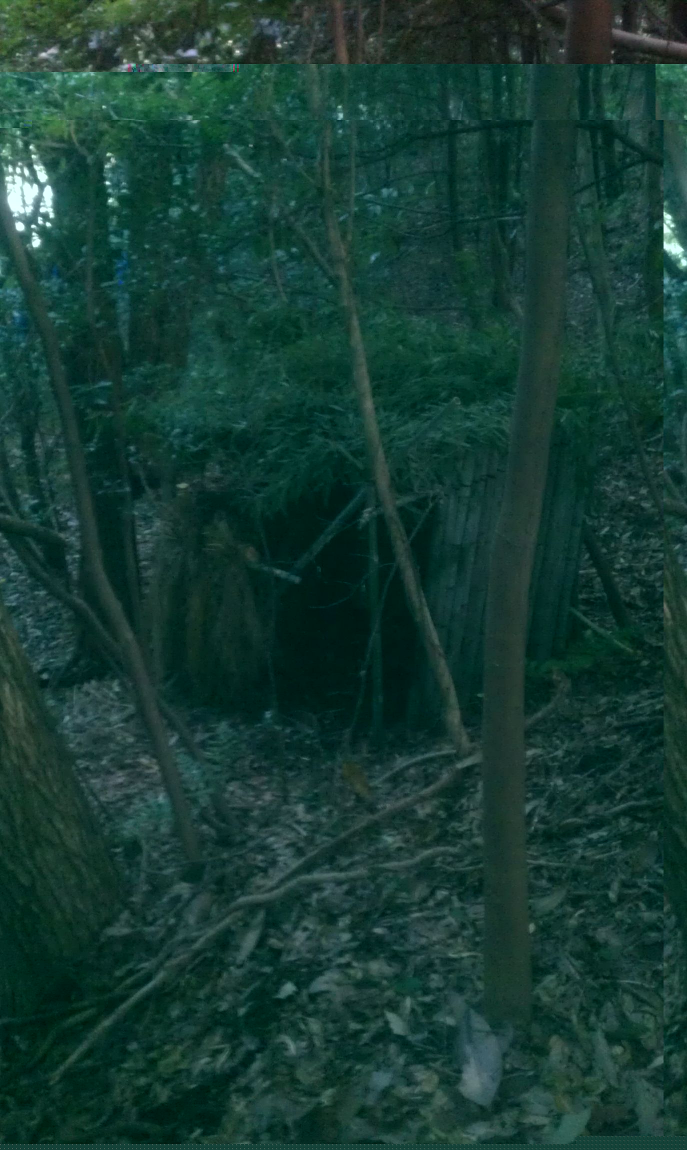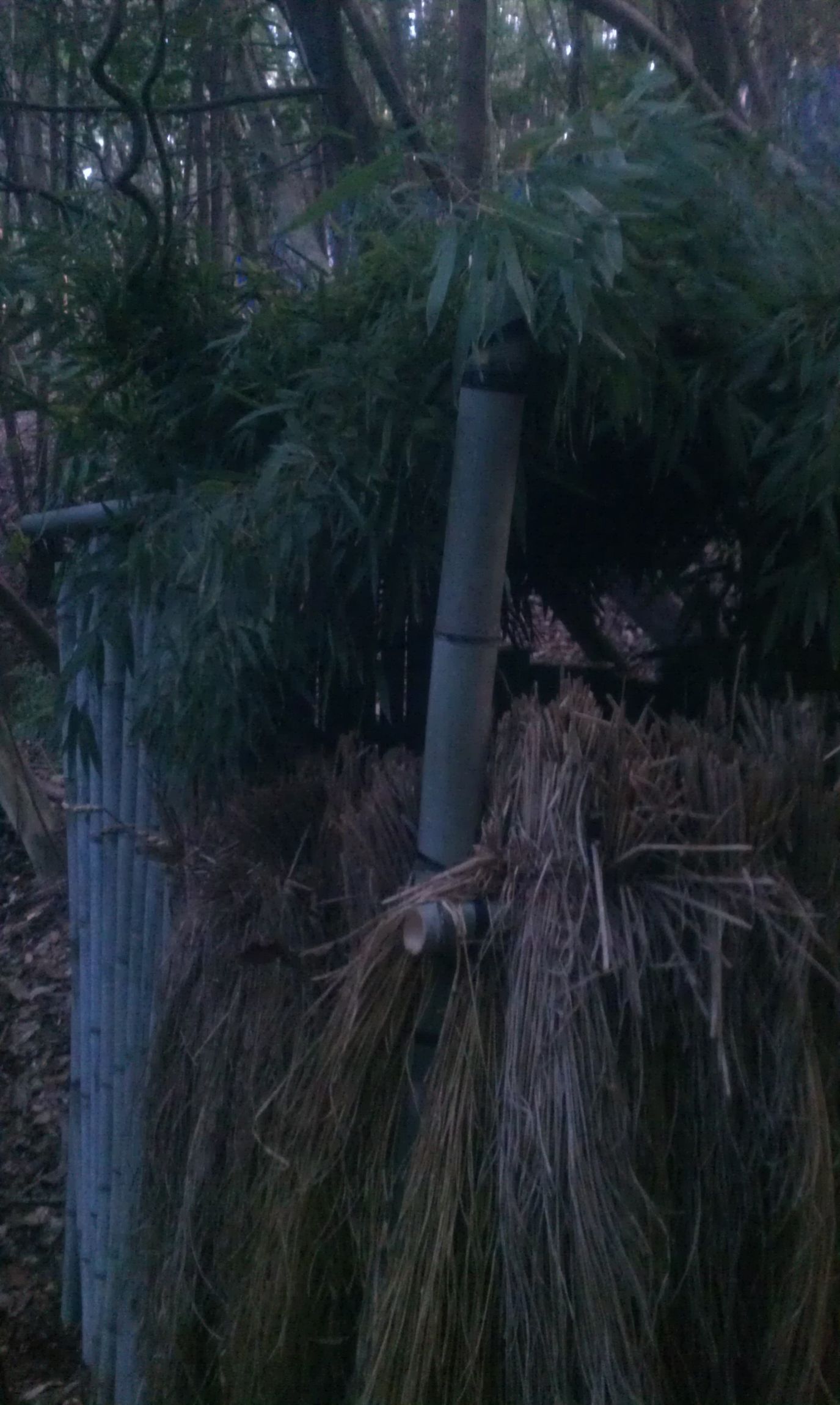 フィールドの中に藁と竹で小屋を作ってみ